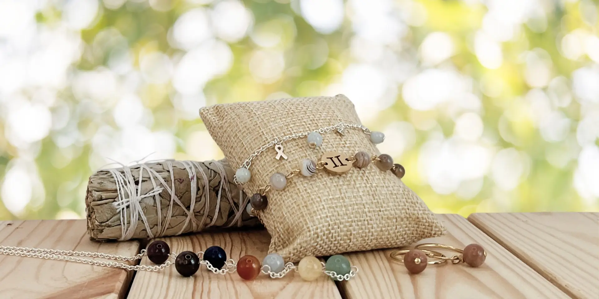 Découvrez une sélection exclusive de nos dernières créations, chaque pièce étant réalisée à la main avec des pierres fines soigneusement sélectionnées pour leurs vertus et leur beauté naturelle.